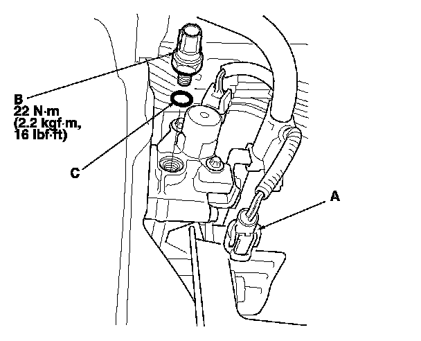 3. Install the parts in the reverse order of removal with a new O-ring (C).