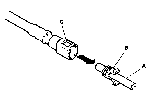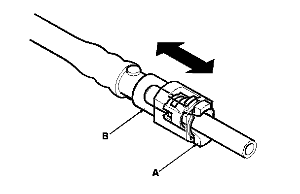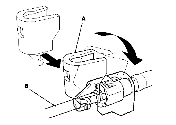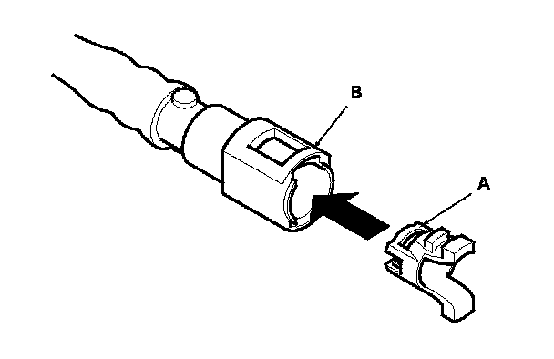 2. Insert a new retainer (A) into the connector (B) if the retainer is damaged, or after: