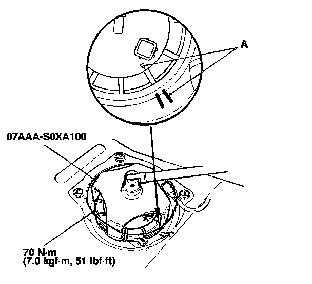 NOTE: To avoid a fuel leak, check the base gasket, visually or by hand, to make sure it is not pinched.
