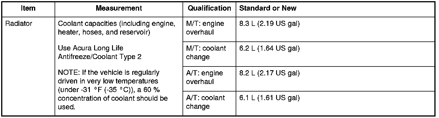 Radiator Specifications