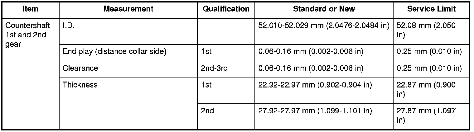 Countershaft 1st and 2nd gear Specifications