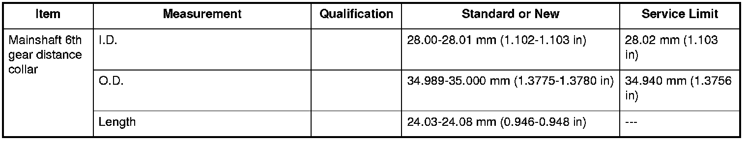 Mainshaft 6th Gear Distance Collar Specifications
