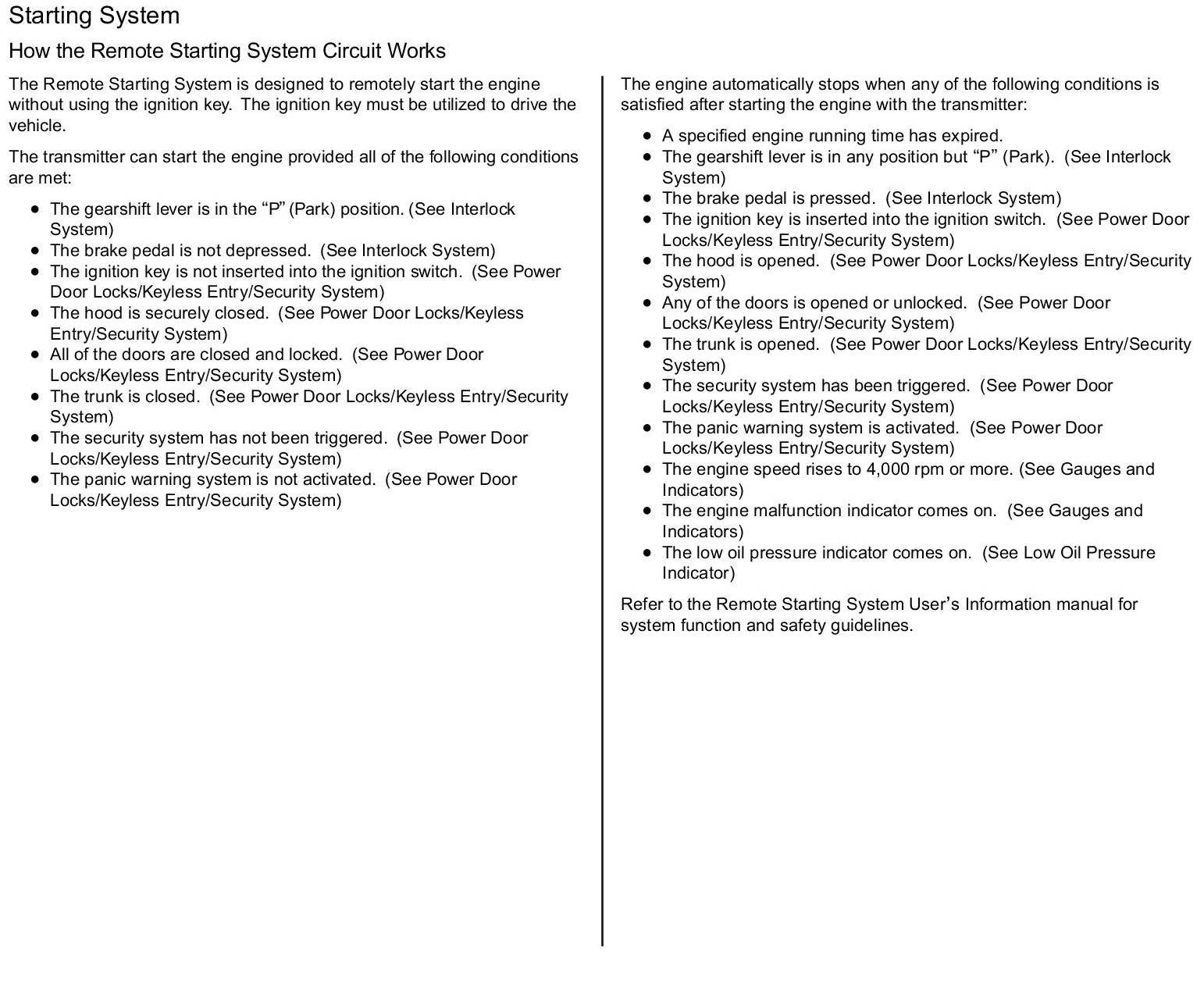Starting System: Description and Operation