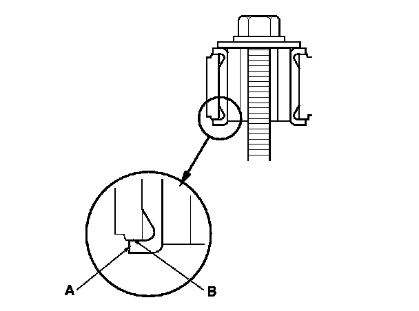 6. Install the gearbox mount cushion by tightening the nut until the mount cushion edge (A) properly fit on the gearbox flange surface (B).