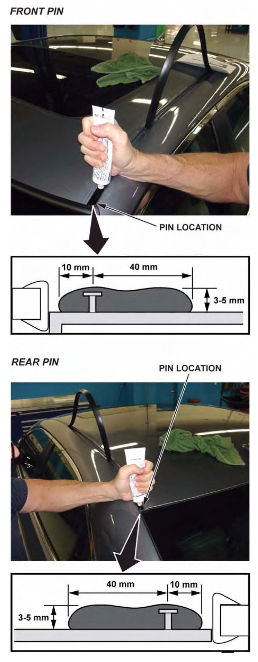 5. Clean the roof molding and the front and rear pins on the body using a shop towel dampened in water.