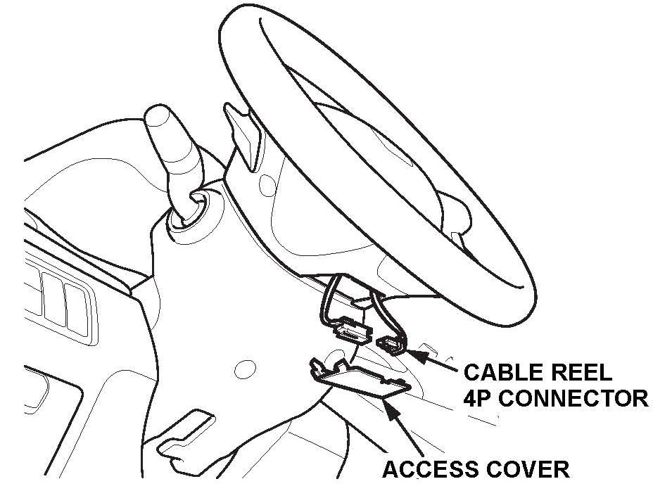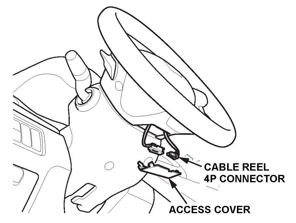 24. Connect the driver's airbag 4P connector to the cable reel 4P connector, then install the access panel on the steering wheel.