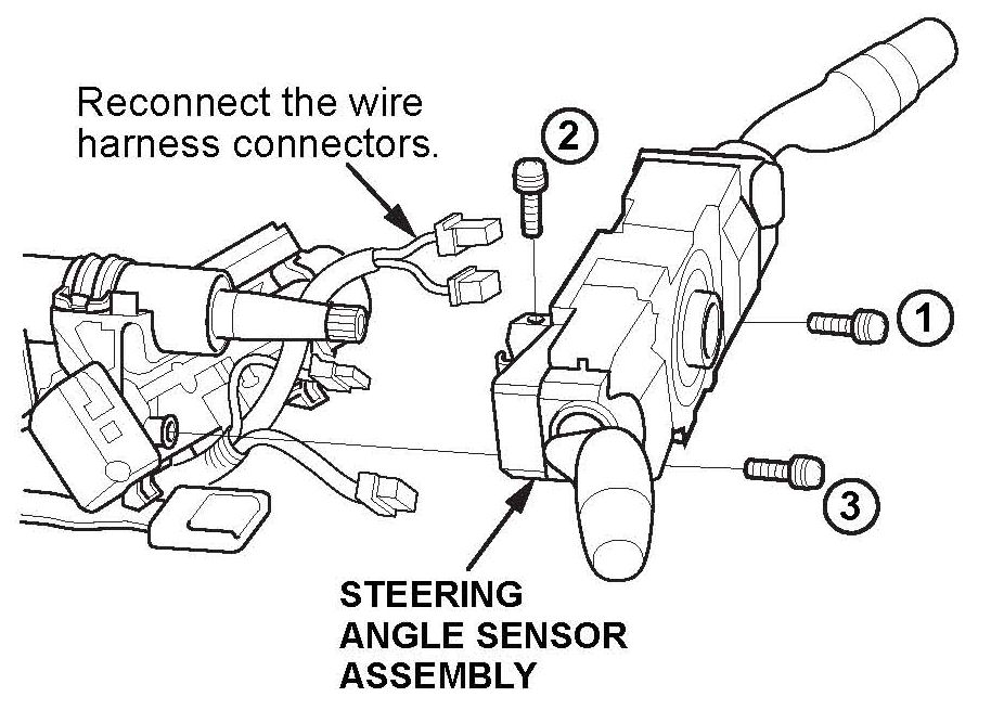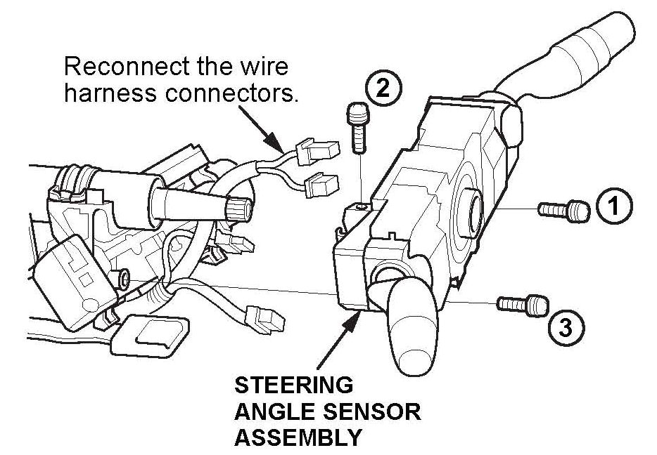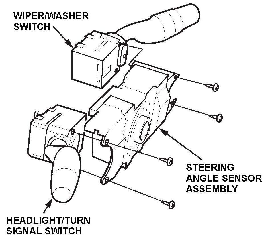 14. Remove the wiper/washer and the headlight/turn signal switches, and install them on a new steering angle sensor assembly.