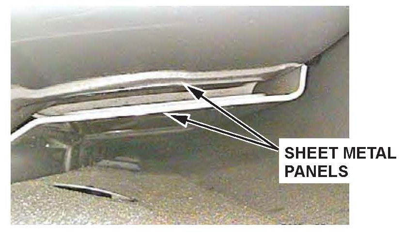 2. Looking through the grommet hole, you will see the sheetmetal panels that make up the jack point.