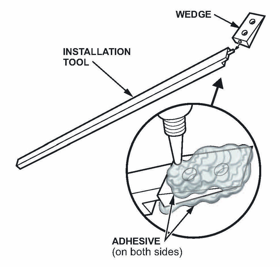 4. Mount the wedge onto the end of the installation tool, and apply a generous amount of adhesive to both sides. Allow the adhesive to become tacky before installation.