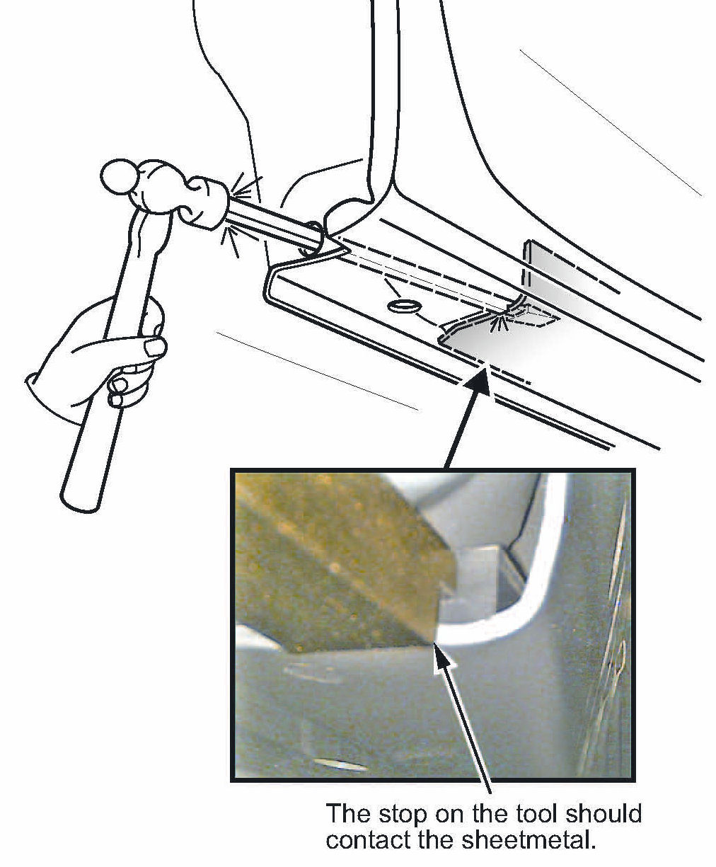 6. Use a hammer to drive the wedge securely into the insertion point until you feel the stop come in contact with the sheet metal.