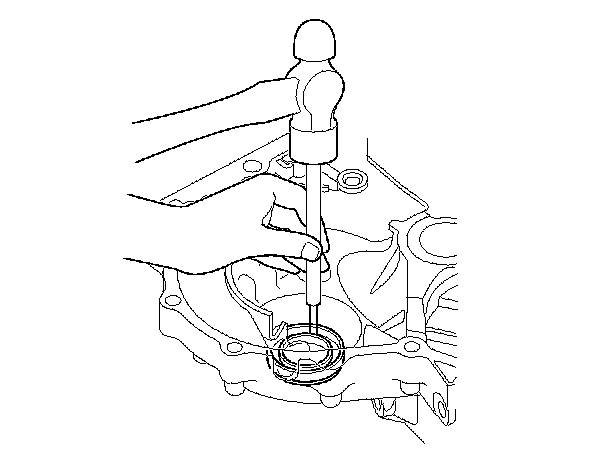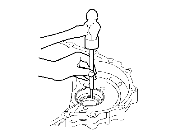 3. Install a new oil seal (A) flush with the transmission housing using the driver handle and the oil seal driver attachment.