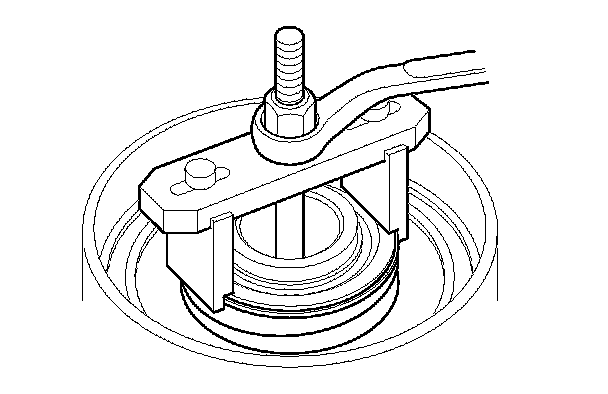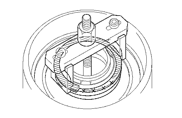13. Check the placement of the clutch spring compressor. If either end of the clutch spring compressor is set over an area of the spring retainer which is unsupported by the return spring, the spring retainer may be damaged.