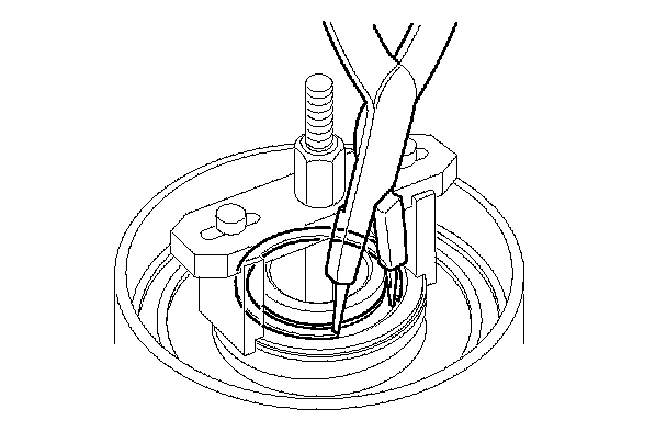 Remove the clutch piston (A), then remove the outer O-ring (B) and the inner O-ring (C) from the clutch piston.