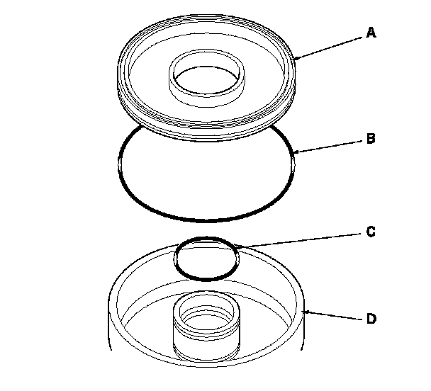 Remove the clutch piston (A), then remove the O-ring (B) from the clutch piston, and remove the O-ring (C) from the clutch drum (D).