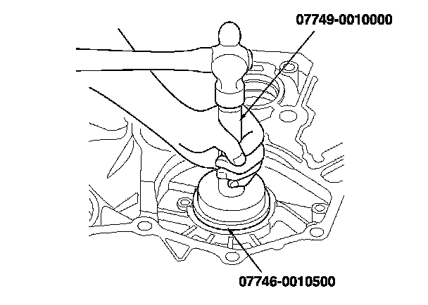 6. Install the secondary shaft bearing using the driver handle and the 62 x 68 mm attachment, and install it securely in the torque converter housing.