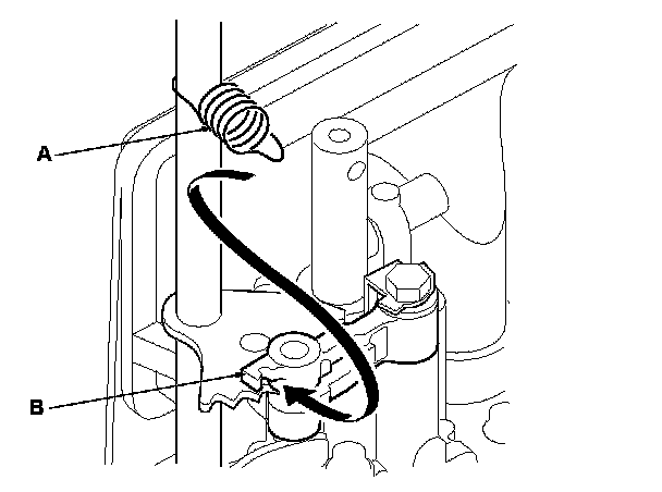 19. Install a new O-ring (A) on the input shaft (mainshaft) speed sensor (B), and install the input shaft (mainshaft) speed sensor in the transmission housing.