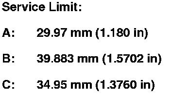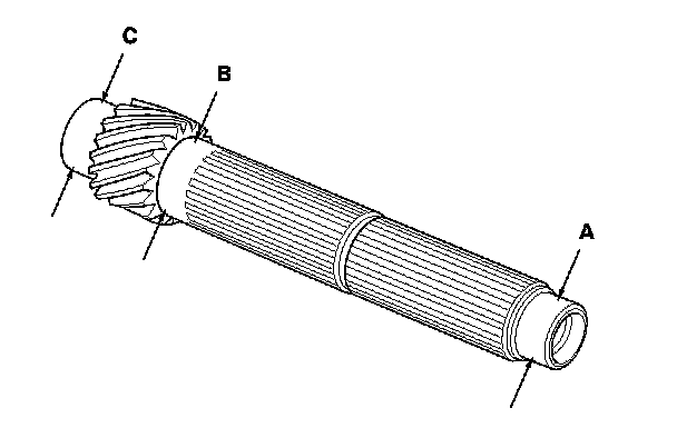 1. Inspect the gear and bearing contact areas for wear and damage, then measure the countershaft at points A, B, and C. If any part of the countershaft is less than the service limit, replace it.
