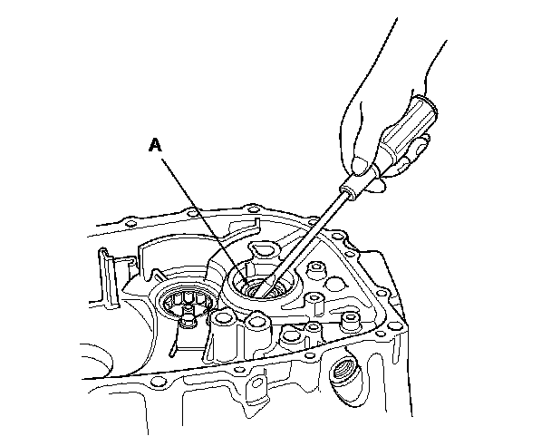 2. Remove the oil seal (A) from the clutch housing. Be careful when removing the oil seal so the clutch housing is not damaged.
