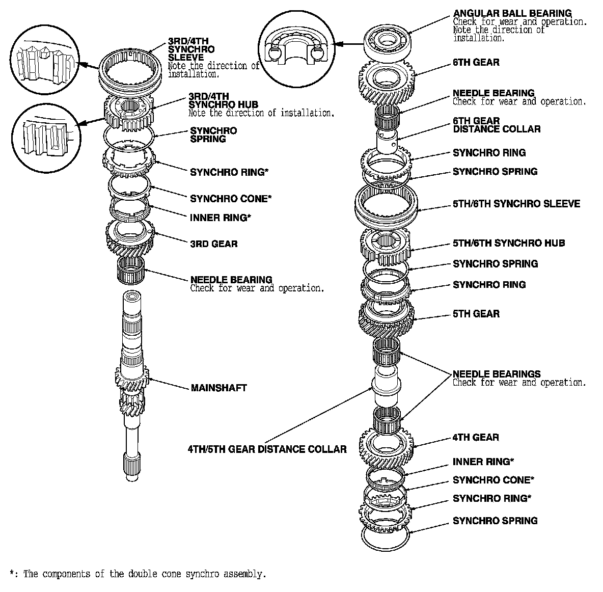 NOTE: Make sure to install the 3rd/4th synchro hub in the direction shown.