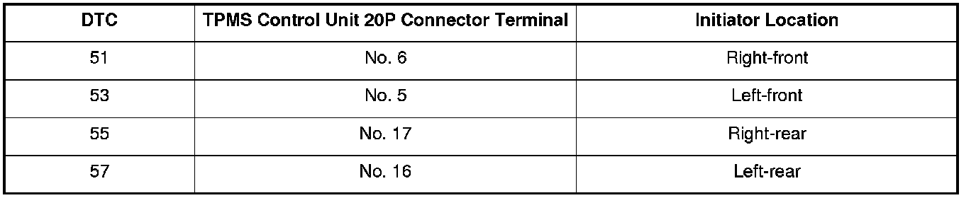 TPMS DTC Troubleshooting: 51, 53, 55, 57