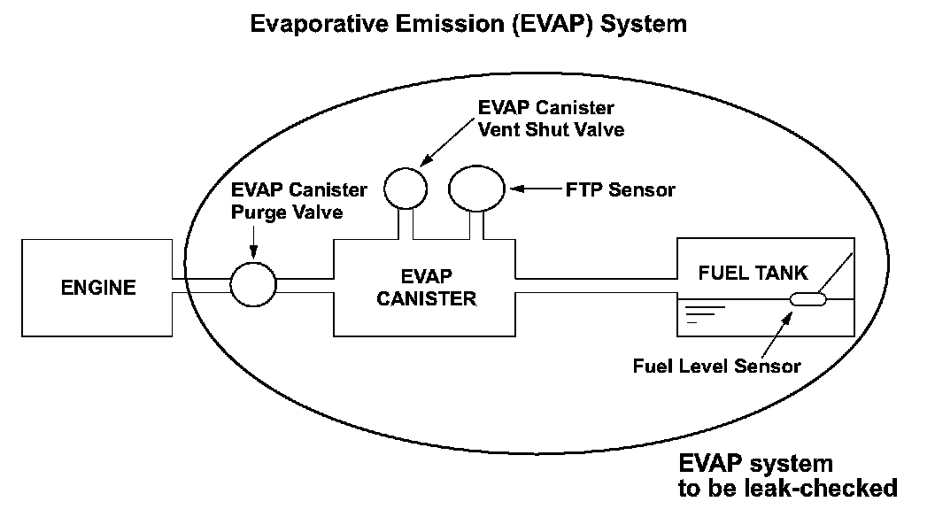 The evaporative emission (EVAP) leak detection system uses an engine off natural vacuum (EONV) method. The EONV method detects leakage from the change in fuel tank pressure via the fuel tank pressure (FTP) sensor with the engine off.