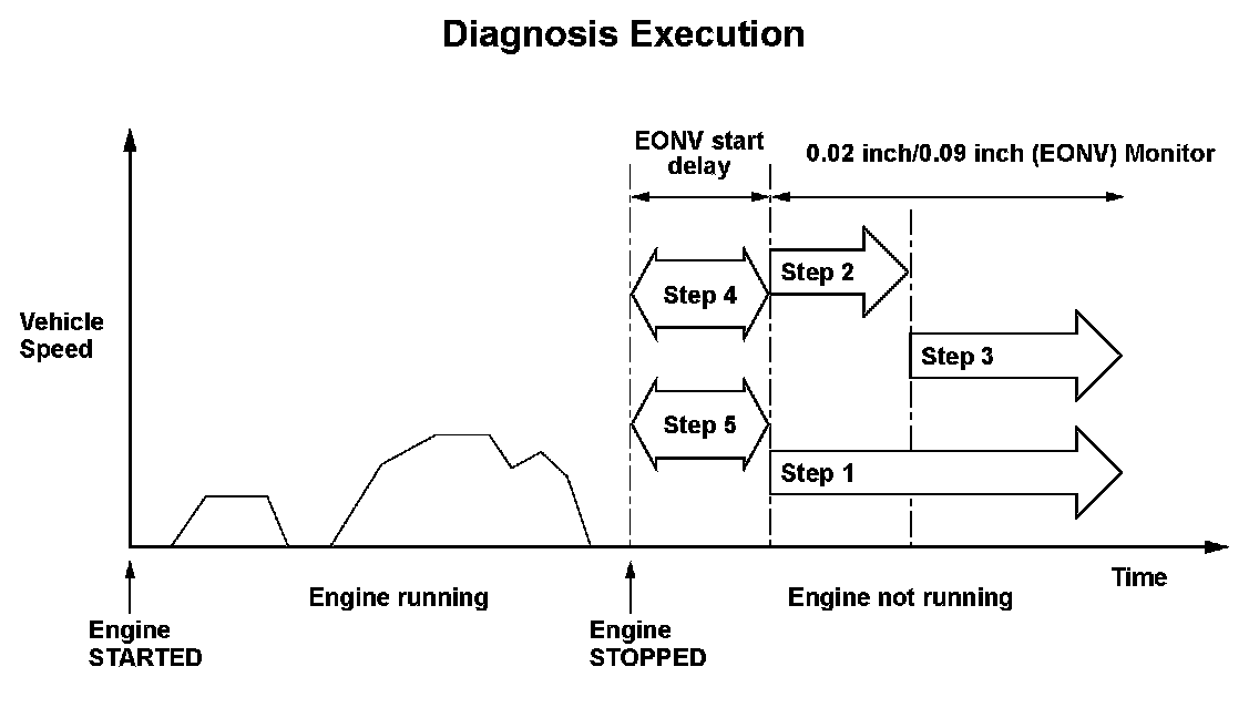 - If a "0.02 inch leak" is detected, it is identified as a malfunction; the diagnosis is complete.