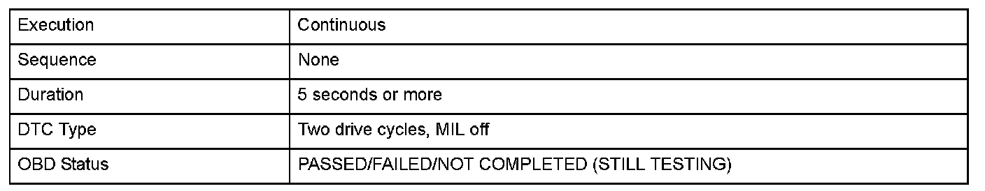 Monitor Execution, Sequence, Duration, DTC Type, OBD Status