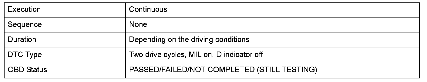 Monitor Execution, Sequence, Duration, DTC Type, OBD Status