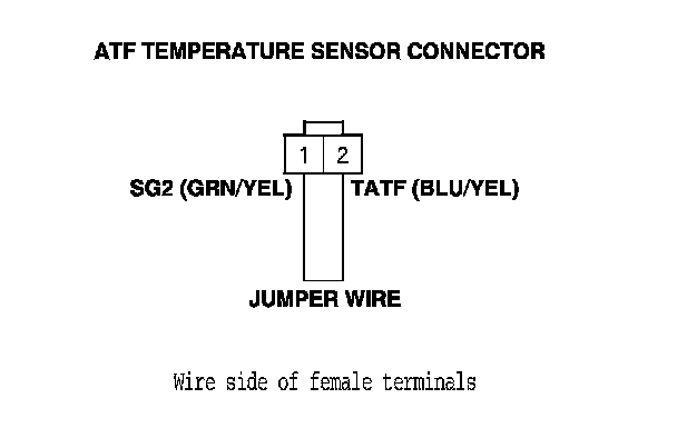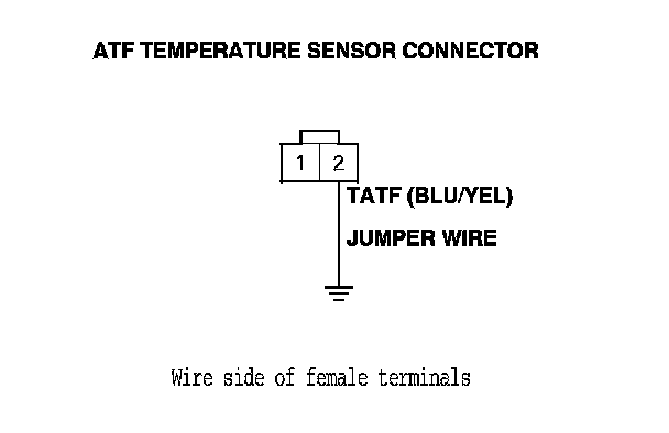 5. Connect ATF temperature sensor connector terminal No. 2 to body ground with a jumper wire.