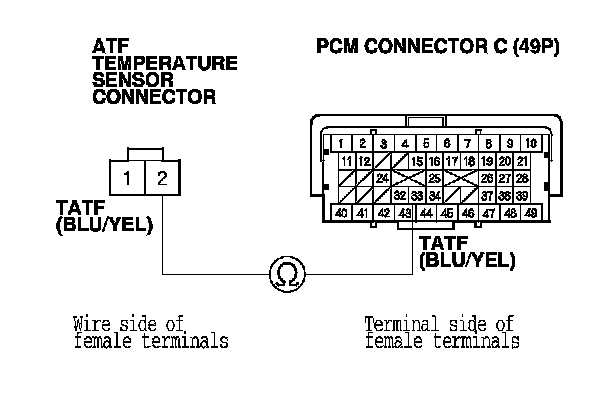 YES - Check for poor connections or loose terminals between the ATF temperature sensor and the PCM, then go to step 1.