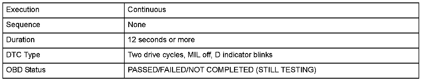 Monitor Execution, Sequence, Duration, DTC Type, OBD Status
