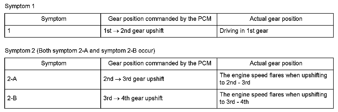 - Driven in 3rd gear with a history that symptom 1 occurred.
