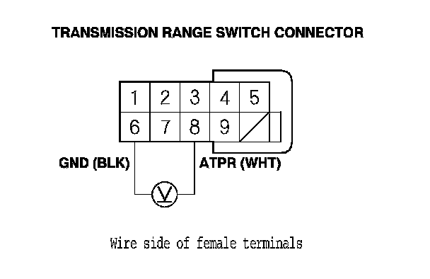 7. Measure the voltage between transmission range switch connector terminals No. 6 and No. 8.