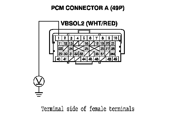 12. Measure the voltage between PCM connector terminal A1 and body ground.