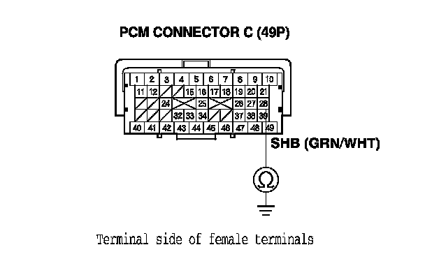 YES - Check for poor connections or loose terminals between shift solenoid valve B and the PCM. If the PCM was updated, substitute a known-good PCM, Reading and Clearing Diagnostic Trouble Codes then go to step 24. If the PCM was substituted, go to step 1.