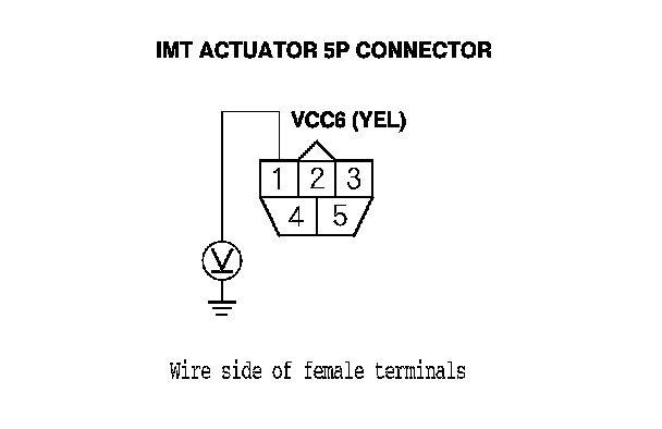 7. Measure the voltage between IMT actuator 5P connector terminal No. 1 and body ground.