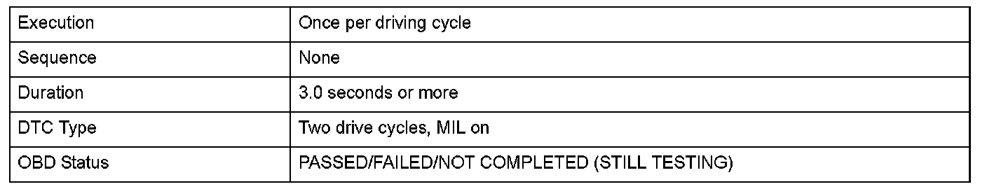 Monitor Execution, Sequence, Duration, DTC Type, OBD Status