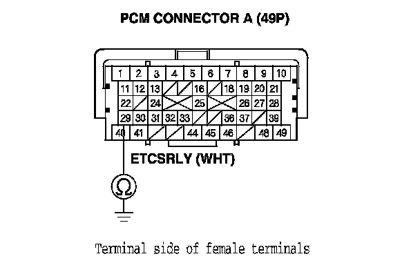 YES - Repair short in the wire between the PCM (A29) and the ETCS control relay, then go to step 13.