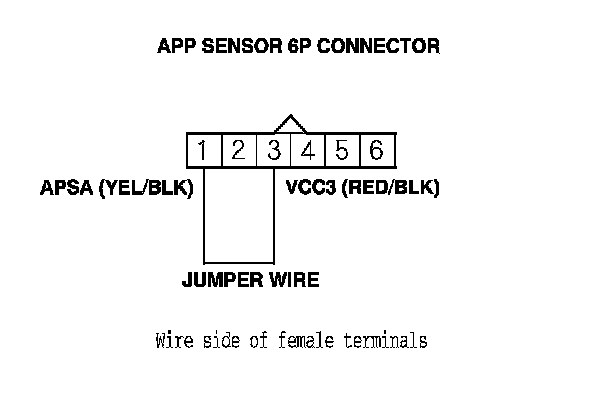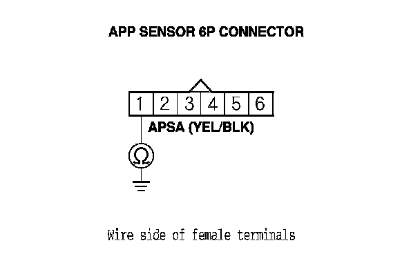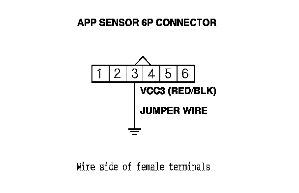 11. Connect APP sensor 6P connector terminal No. 1 to body ground with a jumper wire.