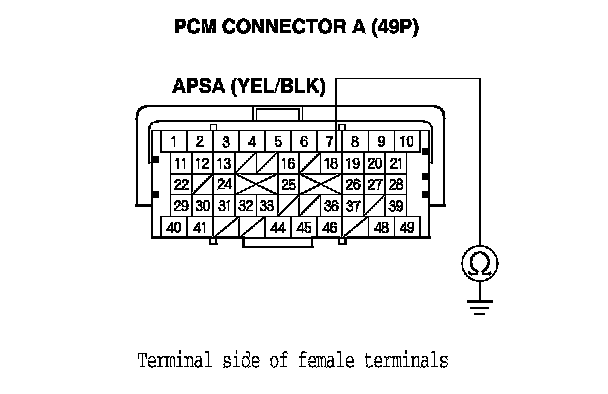 12. Check for continuity between PCM connector terminal A18 and body ground.