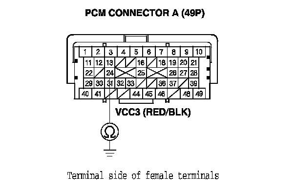 21. Check for continuity between PCM connector terminal A24 and body ground.