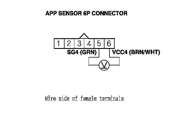 6. Measure the voltage between APP sensor 6P connector terminals No. 5 and No. 6.