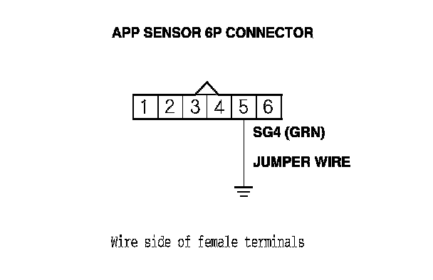 10. Connect APP sensor 6P connector terminal No. 5 to body ground with a jumper wire.