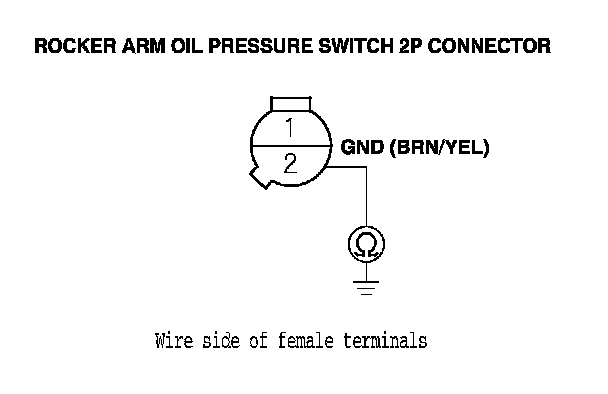 15. Check for continuity between rocker arm oil pressure switch 2P connector terminal No. 2 and body ground.