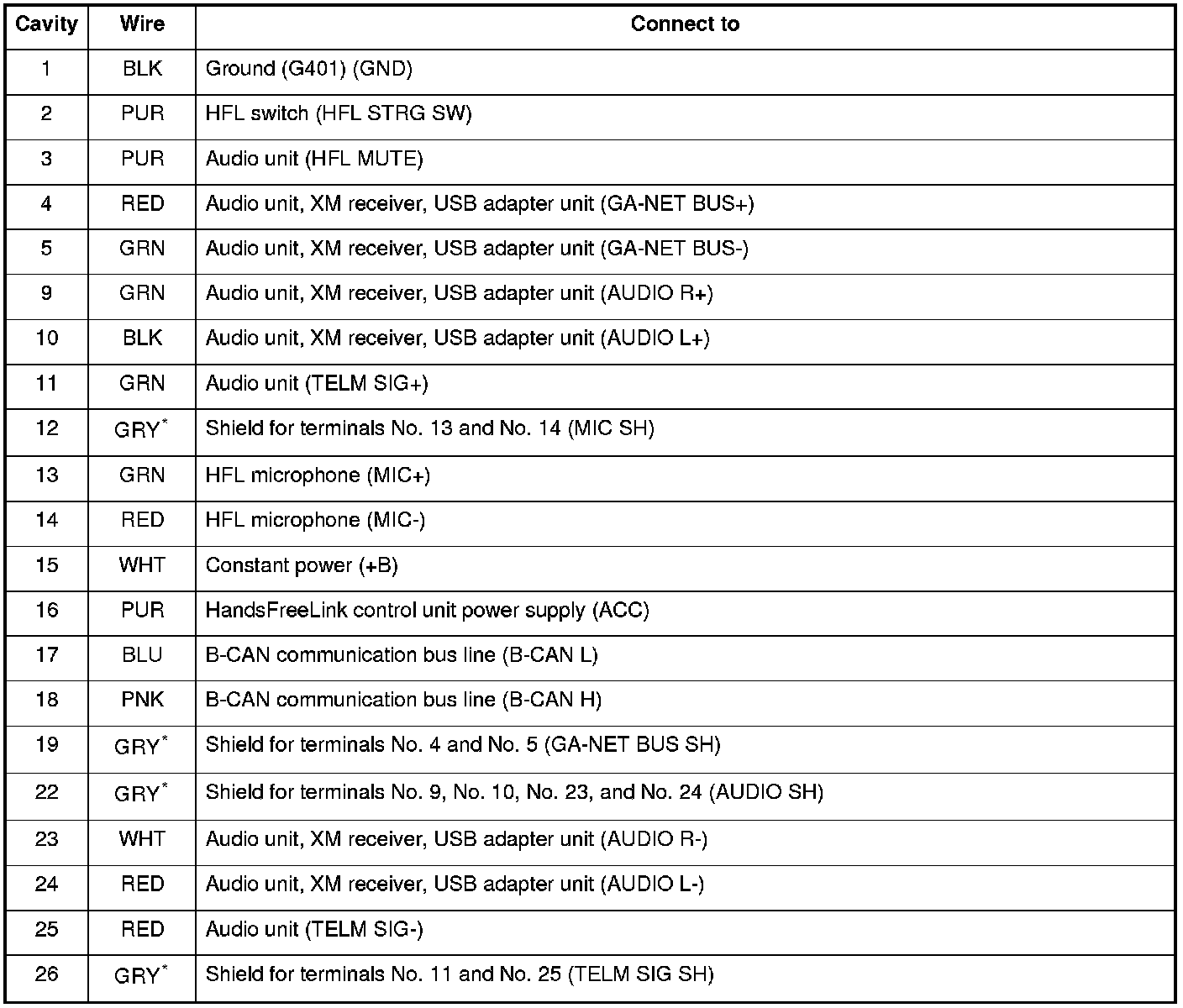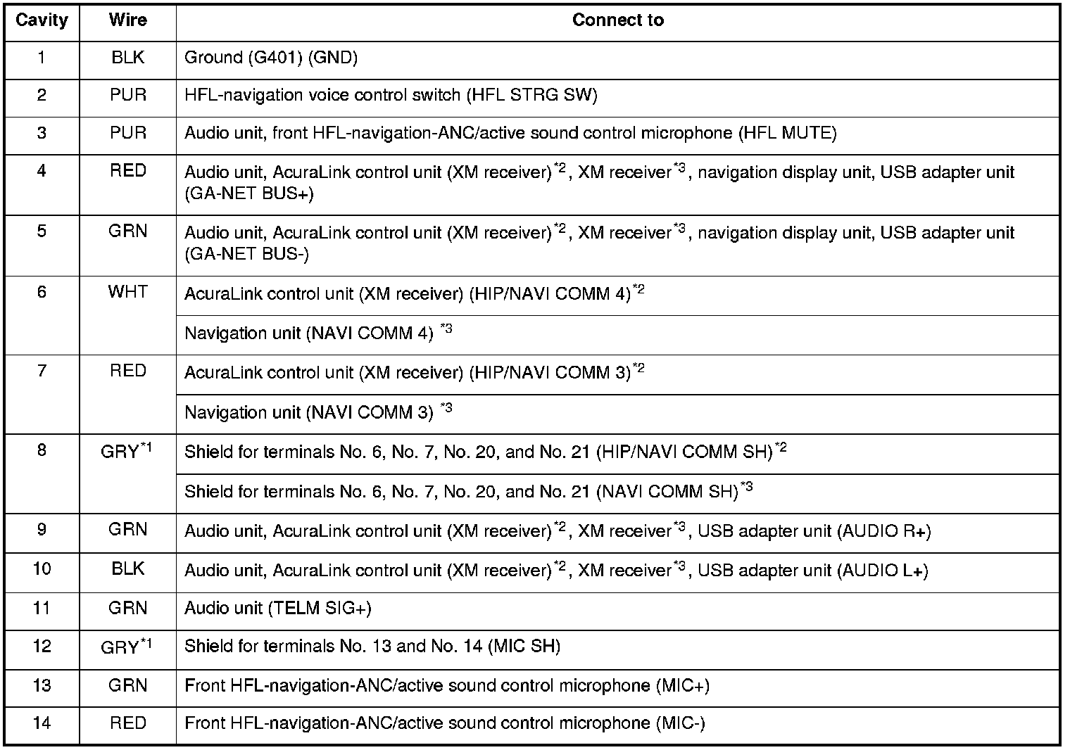 *1: The shielded wires have a heat-shrunk tube insulating the outside of the wire. The color of the insulating tube, typically black or dark gray, may not match the color of the wire listed on the schematic.