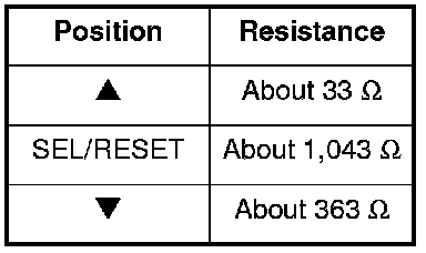 4. Measure the resistance between select/reset/information switch 7P connector terminals No. 2 and No. 6 in each switch position according to the table.