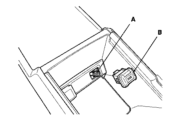 2. Disconnect the connector (A). and carefully pull out the auxiliary jack assembly (B) from the center console box.