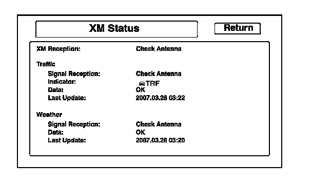 These screens allow troubleshooting on XM or HIP (AcuraLink) problems. Select the item you want to troubleshoot, and follow the diagnostic instructions.