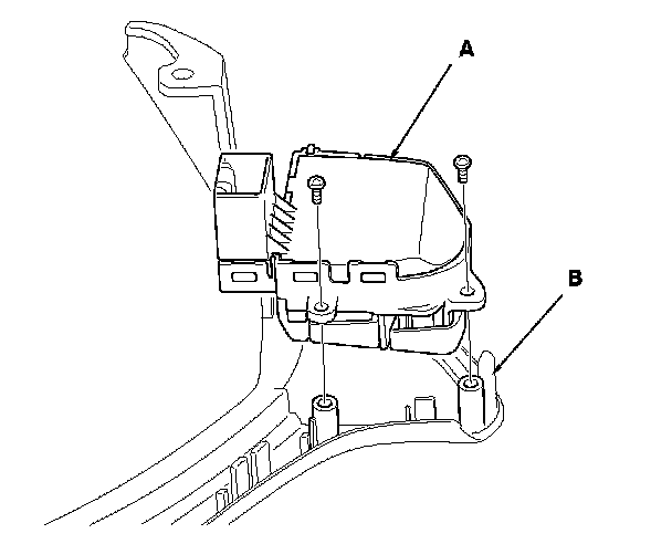 4. Remove the mounting screws and audio remote switch (A) from the steering wheel trim (B).