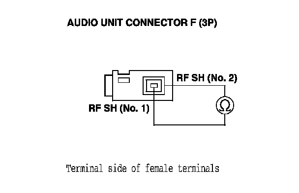 22. Check for continuity between audio unit connector F (3P) terminals No. 1 and No. 2.